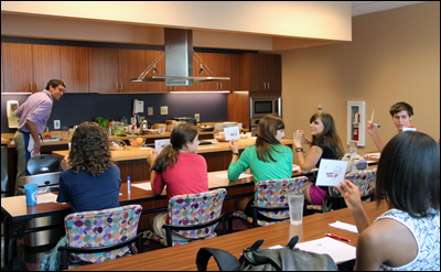 Students check in at the UHC registration desk and wait for the instructor to take them back to the Nutrition Kitchen. Students are encouraged to ask questions at any point in the program about the recipes or any topic relating to food and nutrition.